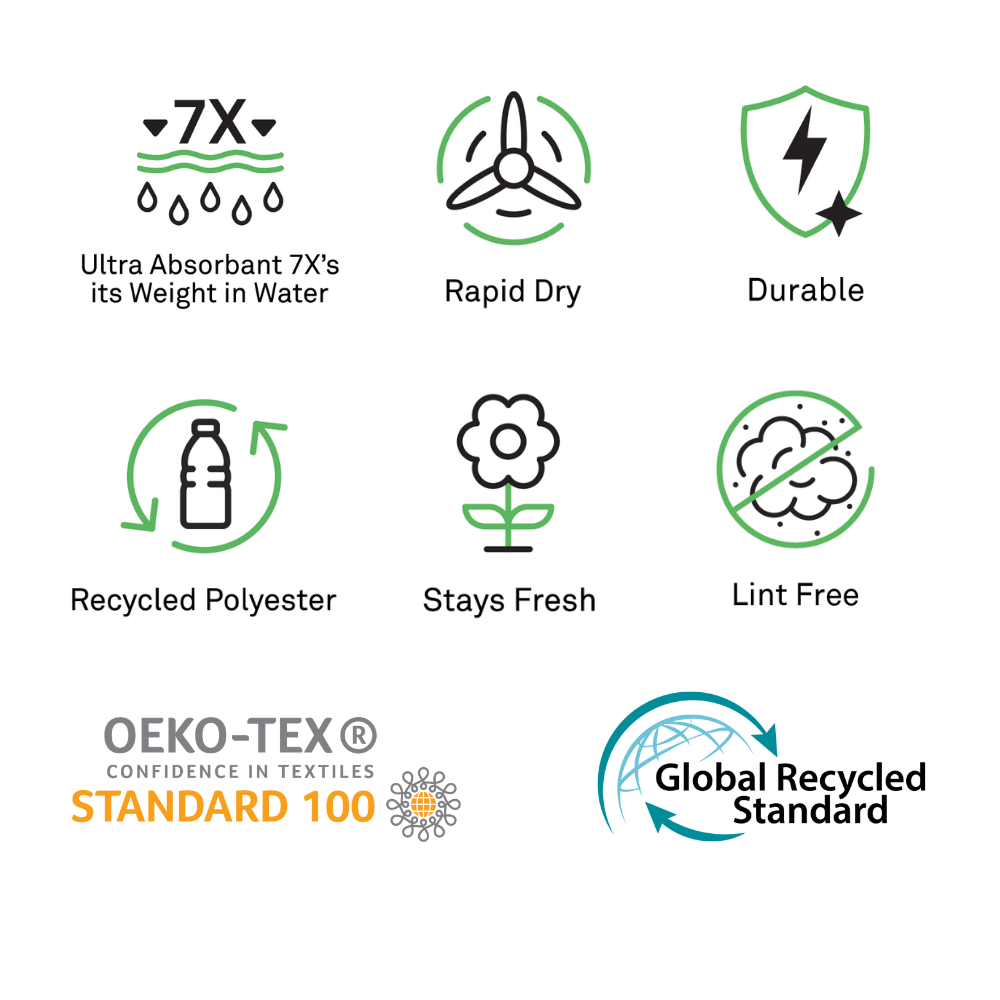 Elevate your daily tasks with Once Again Home’s Anywhere Towels! These superhero sidekicks are multi-taskers, capable of absorbing seven times their weight in water, from dishwater, sweat, and wet hands. With charming designs and durable construction, you'll smile every time you use them. Say goodbye to mediocre towels and hello to superhero sidekicks! Use Anywhere: Kitchen, Dishes, Bathroom, Workout, Camping, and more! Ultra-Absorbent Towel- absorbs 7 times its weight in water Quick Dry Stays Fresh Durable Oversized 18 "x 30" 1 towel = 3 recycled bottles Sustainably produced