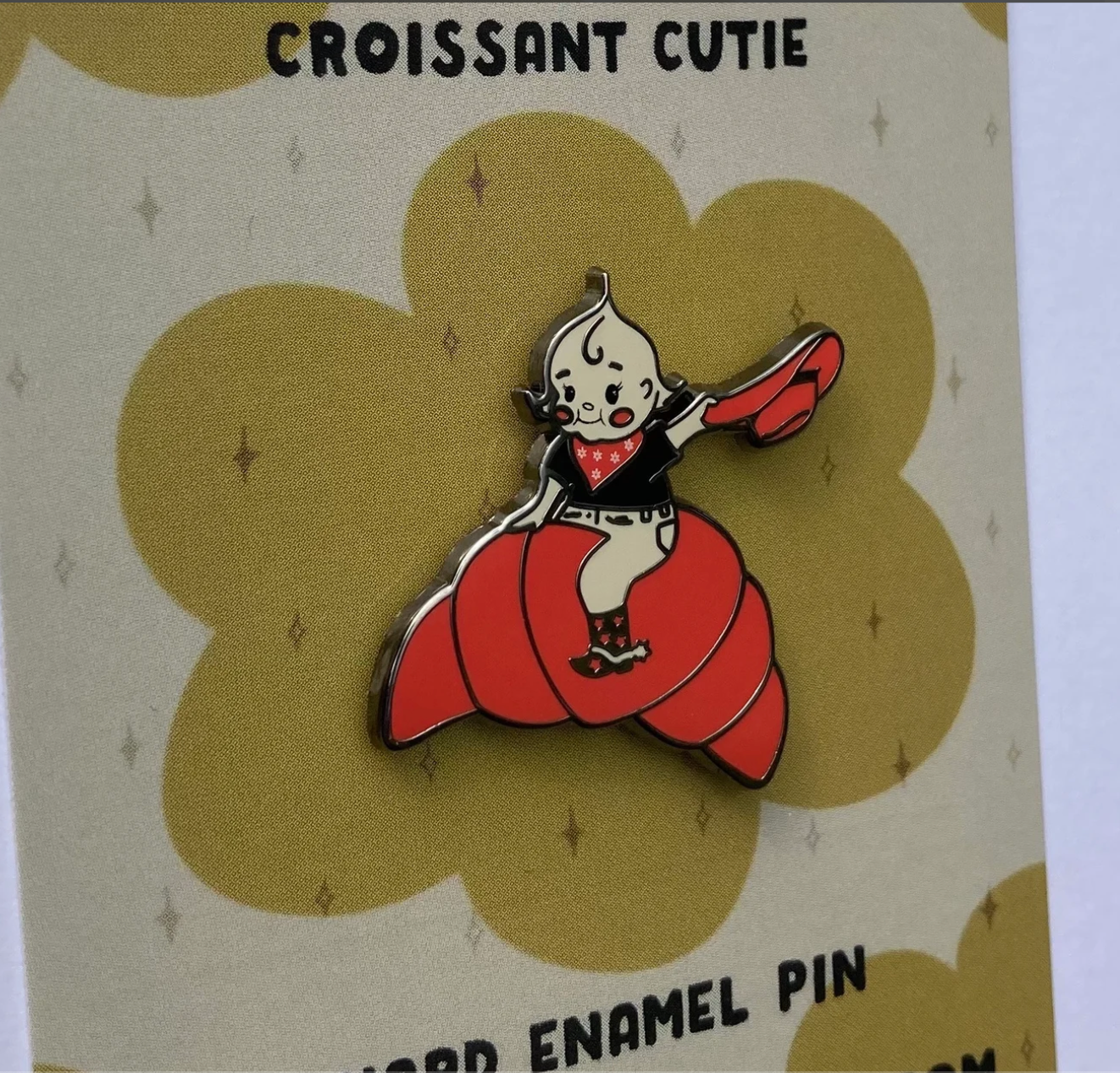 Looking to add some cuteness and vintage charm to your life? Look no further than my adorable Croissant Cutie Hard Enamel Pin. Perfect for foodies, croissant lovers, francophiles, and rootin tootin bread fanatics.