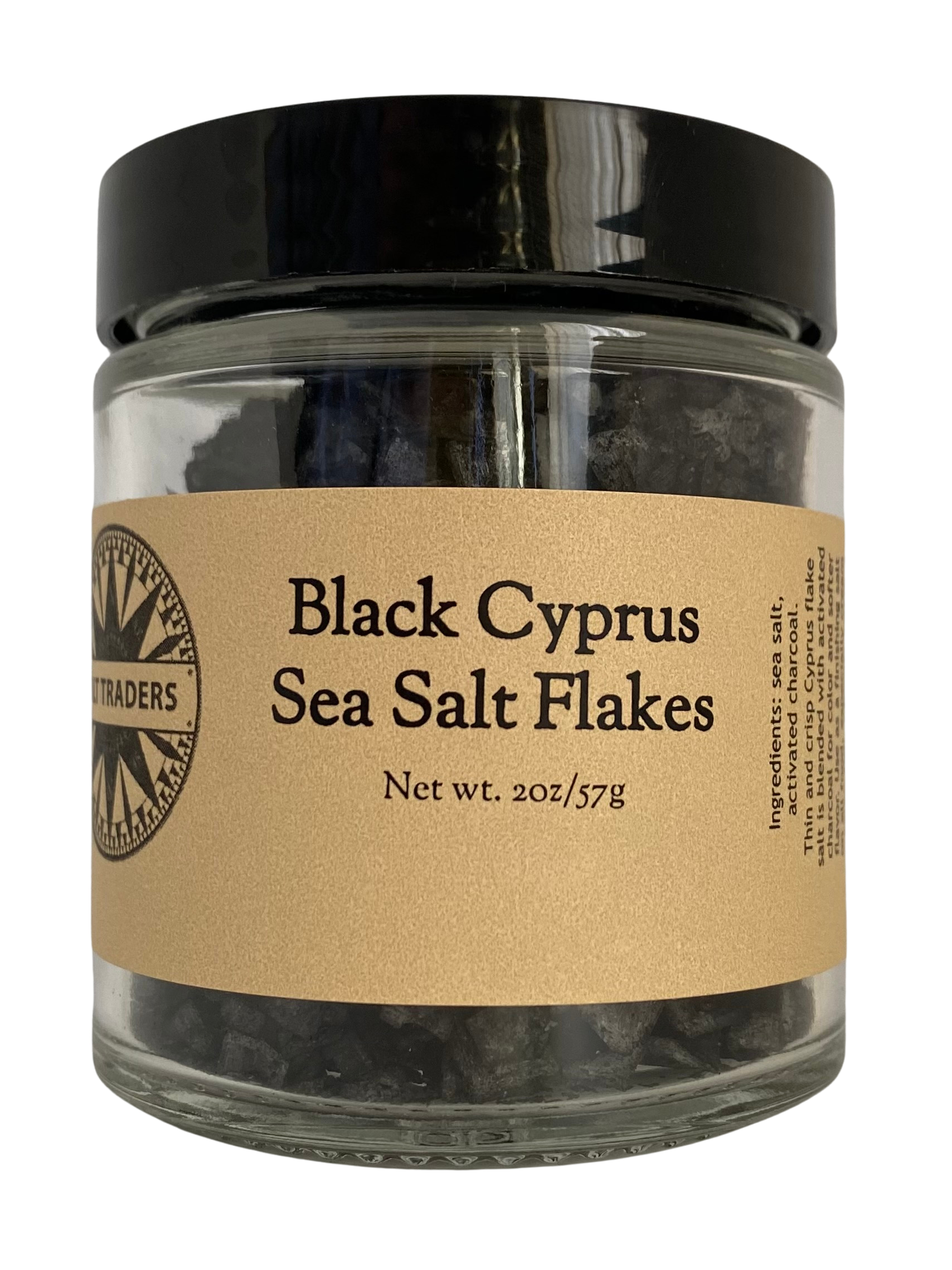 Cyprus Black Sea Salt Flakes are White Cyprus Sea Salt Flakes with activated charcoal added for a dramatic appearance and softer flavor. Thin, crisp pyramid-shaped crystals are stunning on all types of lighter colored food. Season like the pros when you use this beautiful black pyramid-shaped flake salt. Use Cyprus Black Sea Salt Flakes to accentuate flavor and enhance the look of your dish. Size: 2 oz Glass Jar
