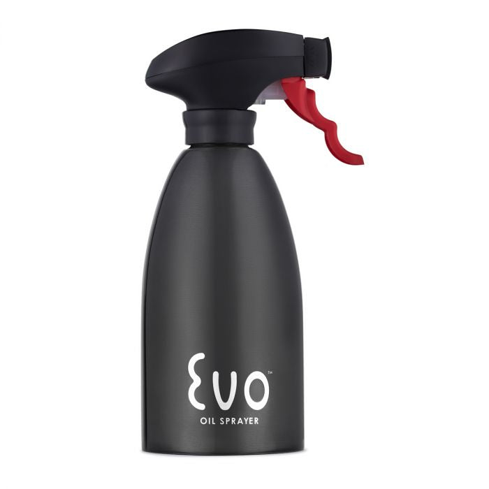 - Evo's Stainless Steel Non-Aerosol Oil Sprayer Bottle sprays without harmful propellants or chemicals, requires no pumping or priming, and won't clog