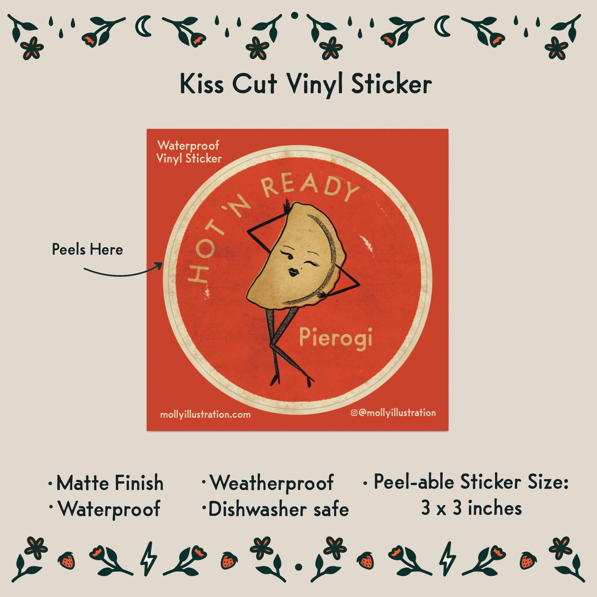 A fun waterproof sticker inspired by my love of pierogies and mid century illustration.