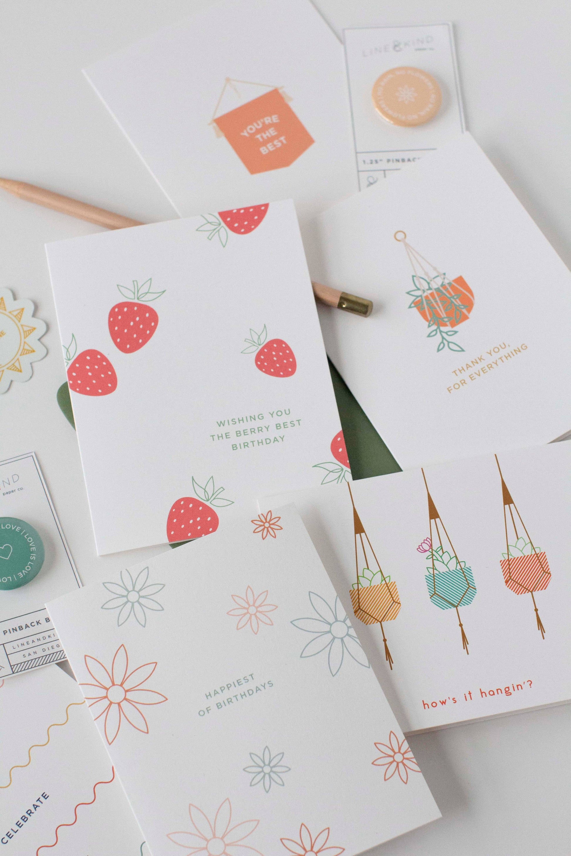 Send that certain someone a meaningful sentiment with one of our Line & Kind Paper Co. greeting cards. Every card has a blank interior, perfect for that hand written note, and a color coordinated euro-flap envelope. All of Line & Kind Paper Co.’s cards are printed on sustainably sourced paper with recyclable and/or compostable materials wherever possible.