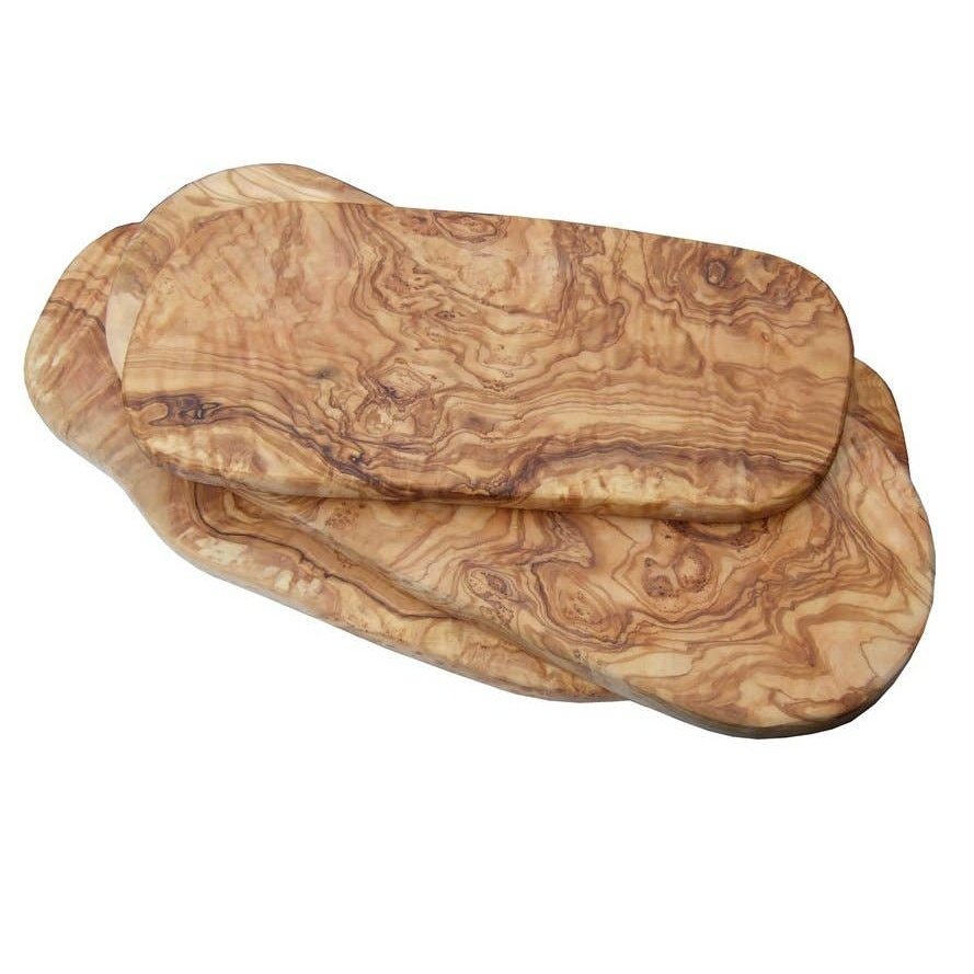 Stunning olive wood cutting boards, which are available in many different sizes. The natural shape of this board means each one is unique. These olive wood boards can be used as cutting boards, cheese boards or serving boards. Hand-crafted from olive wood from the Mediterranean therefore the size and shape of each board will vary slightly. Some of these boards will have a natural edge therefore adding to the beauty and charm of this spectacular olive wood board.