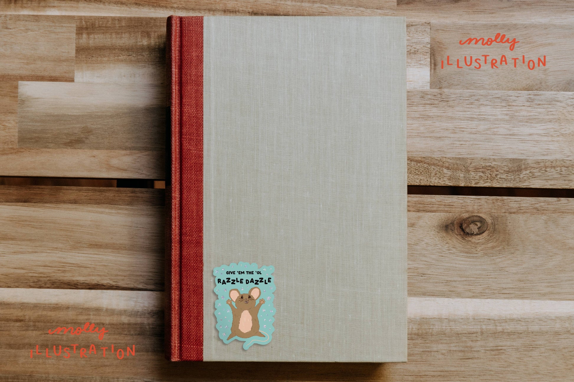 Give em the ol razzle dazzle! This is an original illustration done by Molly and is perfect to stick on water-bottles, bikes, notebooks, laptops and anything else that needs a little something. It features glittery sparkles surrounding the mouse. Sticker measures approximately 3 inches and is waterproof.